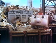 When the S.S. Vienna came to visit Bigg City Port, Warrior had to find an empty barge as she would have garbage to unload. However, he was having difficulties finding an empty barge and Lord Stinker was full. All the barges which were full could not be emptied because Jack had a cold. A large board was placed next to him reading 'OUT OF ORDER'.