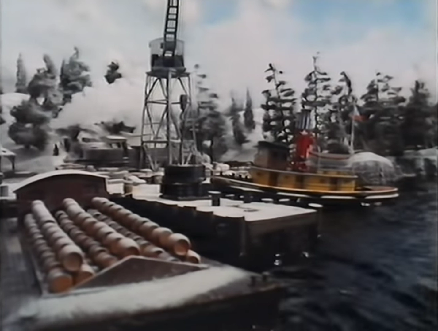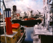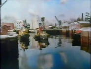 On his way back to the Star Dock, O.J. took a shortcut through the inlet, where he meets Scuttlebutt Pete, who startles him by raising his crane arm.