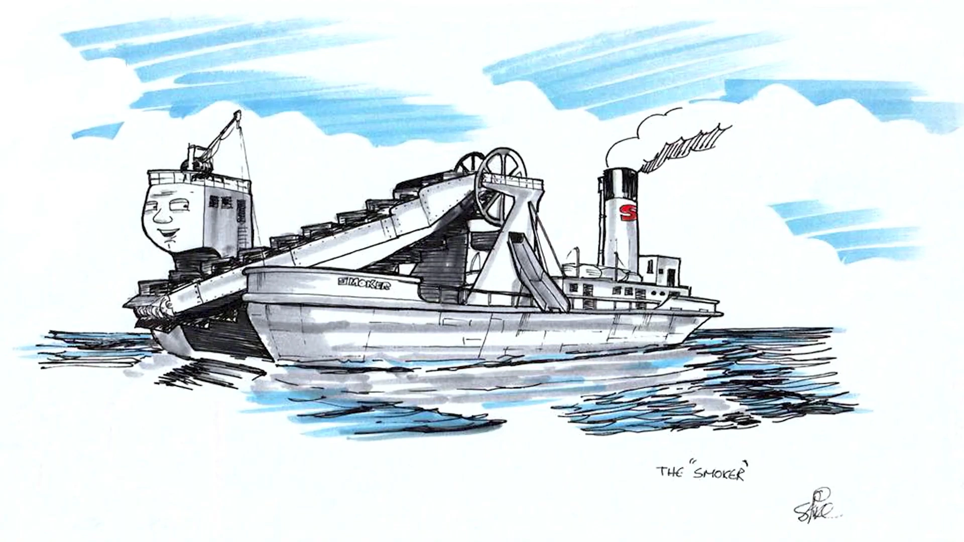 Smoker is a cut character from TUGS. He was planned to be a large steam-powered bucket dredger who would work in Bigg City Port.