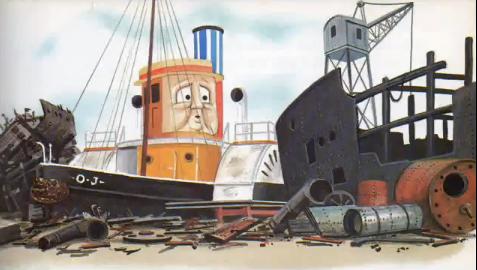 In Treasure Hunt, Ten Cents, Big Mac, and Warrior come here in search of Captain Zero's lost goods. In the TUGS 1989 Annual story, "Mistaken Identity", Zip and Zug find an old paddleboat which they mistake O.J. for. The two doofs end up taking him to the Breaker's Yard accidentally. Big Mac arrives however and saves O.J.