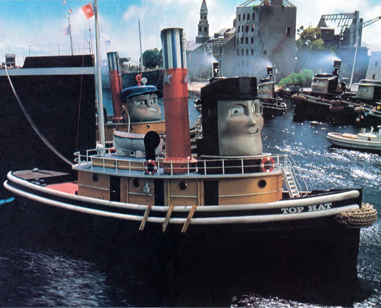 - Top Hat's model is now owned by the TUGS Exhibition. Originally, in 2012, the group only acquired Top Hat’s face masks (sans 'shocked' mask) and his model was the only main tugboat model not purchased by the group as it was under ownership by a private collector. From 2010 to 2024, the model was widely considered lost with its fate remaining unknown. However, the model's survival and ownership at the time was publicly revealed on December 31, 2024, following which Top Hat's prop was publicly displayed for the first time at an event on April 5th and 6th 2025 at the Midland Railway in Butterley on loan from its owner, alongside Sally Seaplane. As of November 4, 2025, the models are now owned by the Exhibition permanently.